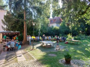 Am 19. August wurde es endlich wieder festlich bei der Dresdner Straßenzeitung. Mit guten Gesprächen, leckeren Speisen und sommerlichen Basteleien feierten wir die Gemeinschaft, unsere Verkäufer*innen, Spender*innen, Unterstützer*innen und Partner*innen, die sich zahlreich im Garten der Paulus-Gemeinde Dresden Plauen eingefunden hatten.